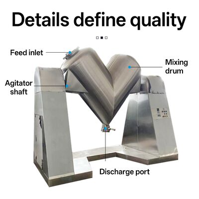 V tipi karıştırıcı, toz ve granüler malzemelerin hızlı karıştırılması için tasarlanmış yüksek verimli bir endüstriyel karıştırma cihazıdır.Dönüşle üç boyutlu bir malzeme hareketi yaratan V şeklinde bir davul ile tasarlanmıştır, bu ekipman konveksiyon, kesme ve difüzyon etkileri ile üstün karıştırma tekdüzeliği elde eder.